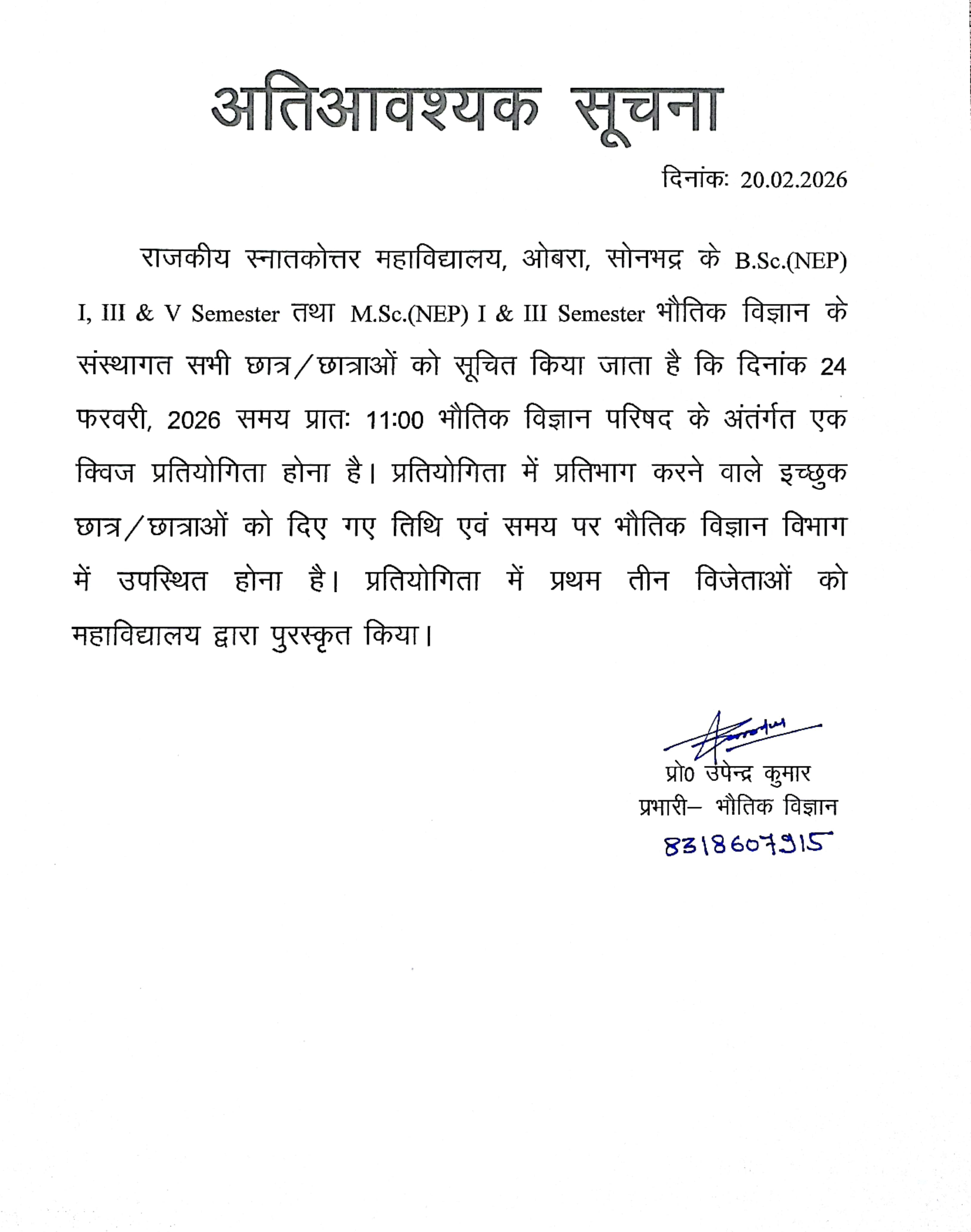 भौतिक विज्ञान परिषद के अंतर्गत दिनांक 24 फरवरी 2026 को क्विज प्रतियोगिता का आयोजन